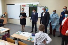 18 ноября нашу школу посетил Глава Заинского муниципального района Р.Г. Каримов, Заинский городской прокурор Р.Р. Каримов, начальник территориального района ФФБУЗ центр гигиены и эпидемиологии в РТ в Заинском районе Насибуллин Р.М. начальник управления образования ИК ЗМР Печина Л.Р. Директор школы Биканов И.А. рассказал, как проходит утренняя фильтрация обучающихся, как организовано обучение и питание в школе. Гости посетили урок в первом классе, где учитель начальных классов Бушуева Д.Л. рассказала о соблюдение санитарно-гигиенических норм и обработке класса.