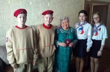 Члены отряда юнармии и Российского движения школьников вручили ветеранам тыла, вдовам памятные медали 75-летия Дня Победы и открытки, сделанные на уроках технологии. Дети слушали рассказы о том тяжелом времени, рассматривали награды ветеранов.