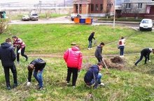 22 апреля после уроков все учащиеся школы вышли на уборку школьной территории. Убирали мусор, старые листья за забором школы, привели в порядок школьный стадион, спортивные площадки, работники школы побелили бордюры, юноши старших классов окопали деревья.