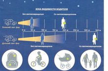 Световозвращающие элементы –это элементы, изготовленные из специальных материалов, обладающие способностью возвращать луч света обратно к источнику. Если пешеход использует световозвращающие элементы, то водитель имеет возможность заметить его с расстояния, превышающего 150 м. Разместить свтетоотражающие элементы на одежде необходимо на высоте 80 сантиметров до 1 метра от поверхности проезжей части. Наиболее всего заметна прямая световозвращающаяся полоска длиной не менее 7 сантиметров. Лучше использовать одноврнеменно несколько предметов со световозвращающими элементами различной формы и размеров.