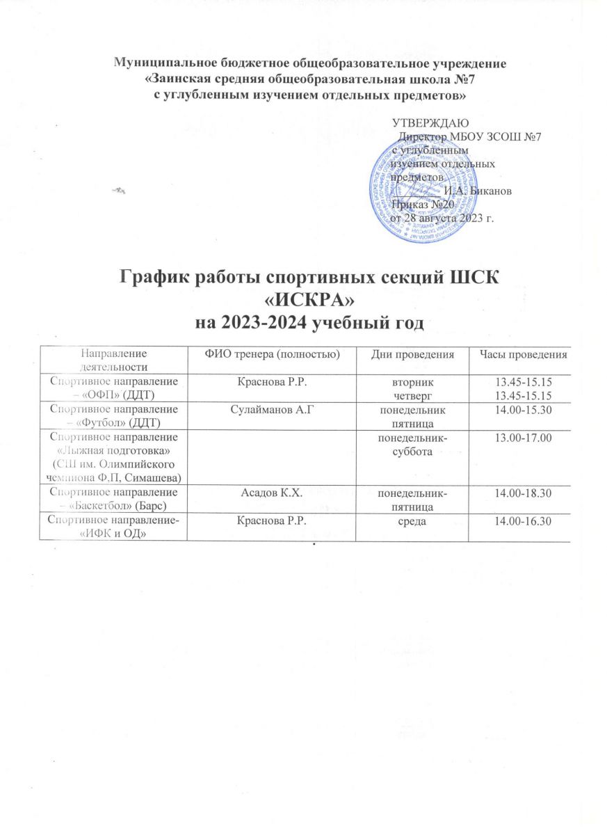 Приказ о продолжении работы ШСК ИСКРА в 2023-2024 учебном году