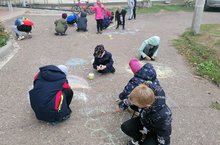 Учащиеся начальных классов в рамках внеурочной деятельности присоединились к акции «Яркий город», рисовали на асфальте добрые рисунки. К ребятам присоединились и родители первоклассников.