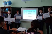 Для учащихся 8 – 9 классов было проведено мероприятие посвященное Дню Российской науки. Целью данного мероприятия являлось содействовать расширению представлений обучающихся об истории и достижениях российской науки; способствовать формированию положительной нравственной оценки деятельности во имя науки, прогресса; воспитывать уважительное отношение к людям умственного труда, чувства патриотизма, гордости за свою страну, свой народ; побуждать к участию в кружках технического творчества, к овладению техническими навыками. На мероприятии дети просмотрели презентацию о выдающихся ученых Российской науки, их портреты, познакомились с их биографией и достижениями. Также в конце мероприятия были подведены итоги услышанного и увиденного в виде викторины. Дети с интересом слушали информацию и участвовали в викторине. Узнали много нового и интересного о выдающихся ученых Российской науки.