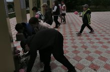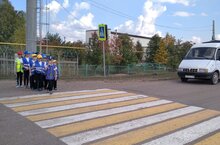 Учащиеся 3, 4 классов ознакомили 1 классников правилами дорожного движения.