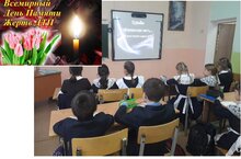 В школе прошли классные часы, в конце которых учителя и учащиеся почтили память воинов минутой молчания.