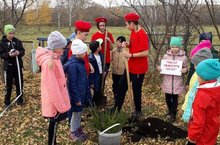 ТАССР төзелүгә 100 елга багышлап мәктәп территорияседә яшь чыршы һәм нарат үсентеләре утыртылды.