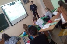 Девятиклассники и семиклассники совместно провели урок по произведениям Л.Н.Толстого . Каждый ученик создал буктрейлер по произведениям Л.Н.Толстого. Определились победители конкурса.
