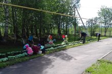 День начался в зарядки. Был проведен инструктаж по пожарной и антитеррористической безопасности. Беседа на тему "Внимание дети". Во время трудового десанта были очищены клумбы цветов от сорняков.