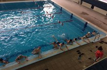 Учащиеся 8 класса посещали бассейн. Они знакомились с техникой плавания в бассейне.