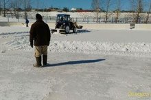 Ял көнне булган көчле кар яву мәктәпнең хоккей мәйданчыгын каплап киткән иде. Хәзер аны кардан арындыру бара.