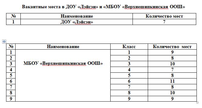 Вакантные места для приема на 1.09.2018 г. Посмотреть