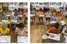 Накануне памятной даты – дня полного снятия блокады Ленинграда в старших-подготовительных группах были организованы беседы "Дорога жизни", "Подвиг Ленинграда" с использованием интерактивной презентации. Ребята узнали, как мужественно сражались жители осажденного города, об их стойкости. Слушали рассказы про нелегкую жизнь детей блокадного города, просмотрели фото и видеоматериалы будней блокадного Ленинграда. Большое впечатление на детей произвели истории о трагических событиях того времени, о сорокакилометровой полосе по Ладожскому озеру, связывающей блокадный Ленинград с продовольственными базами. Свои эмоции ребята выразили в рисунках. Воспитанников подготовительной логопедической группы впечатлил рассказ о блокадном хлебе. Вместе с воспитателем ребята испекли блокадный хлеб, попробовали сами и разнесли всем сотрудникам.