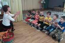 В детском саду продолжает работать дежурная группа для детей работников тех предприятий и организаций, чья деятельность не приостановлена. Сегодня музыкальный руководитель Рыцова Л.И. провела для детей занятие "Подружись с ритмом".