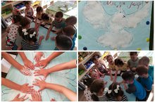 В рамках месячника "Экстремизму - Нет! " ребята старшей логопедической группы, нарисовали плакат "Мы за мир", на котором изобразили голубя мира, он несёт людям, мирные мысли и добрые пожелания жителям планеты Земля. Рисовали нестандартной техникой рисования, ладошками. Данная техника, развивает мелкую моторику, воображение, фантазию, способствует развитию речи, а также является хорошим рефлекторным массажем. Слово «Мир» живёт в веках, Звучит на всех языках. Мир - земля на всех одна И нет места слову «война»!