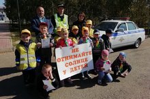 "Не отнимайте солнце у детей!". С такой акцией, в рамках месячника безопасности, на улицы города вышли сегодня дети подготовительной группы, с педагогом Кириловой И. А., начальником отделения "БДД" Ивановым В. В. и сотрудниками Госавтоинспекции. Дошкольники раздавали водителям памяти и приклеивали на лобовое стекло солнце - стикер. Такая яркая акция, по мнению педагогов и сотрудников Госавтоинспекции, поможет ещё раз напомнить водителям об ответственности за жизнь и здоровье детей.