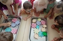 В природе увидеть как распускаются цветы очень трудно. А мы дети старшей группы в экспериментальной деятельности смогли это увидеть. Из цветной бумаги вырезали цветы, сложили лепестки к центру. Опустили их в воду и наблюдали, как в скором времени бутоны раскрылись. Детям очень понравилось, они радовались каждому распустившемуся цветку!