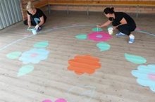 Лето красное-пора прекрасная. Лето все вокруг цветет, овощи и фрукты поспевают, настроение великолепное. Педагоги играют с детьми в различные игры и проводят разнообразные мероприятия. Идей множество, одна из них это игры на асфальте, давно полюбившиеся у детей классики, лабиринты и тд. Яркие цвета , различные фигуры , все это вызывает интерес у ребенка. Но , чтоб рисунок был красив и ярок , его конечно же, нужно обновлять. Сегодня сотрудники сада вооружившись кисточками и красками возвращали былую красоту нашим творениям. Все получилось просто великолепно, это буйство красок так и манит поиграть на улице.