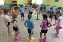 Плоскостопие наиболее часто формируется в детском возрасте и по мере взросления может принести много неудобст. При развитии плоскостопия омечается нарушения опорной функции в конечностях, что приведет в дальнейшем к деформации стопы и болям, а иногда даже и судорогам. В нашем саду педагог по физической культуре Тимофеева Татьяна Геннадиевна проводит профилактику плоскостопия у детей. Детям очень нравятся и они с удовольствием посещают занятия.