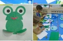 Детский сад заполонили лягушки: зеленые, веселые, симпатичные! Это что же, надо вызывать санэпидемстанцию? Да нет! Просто дети средних групп (а их у нас четыре) согласно программе выполняли работу по аппликации на тему "Лягушки". И конечно ходили сравнивали: чьи лягушки лучше получились. Победителей не выявили. Все постарались на славу!
