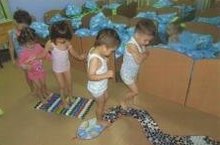 И всё будет получаться.Как только в группах температура стала в пределах нормы все группы регулярно проводят закаливающие процедуры после сна. Здесь и коррегирующие дорожки, и зарядка как на кроватях, так и в группах.