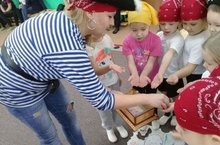В этот субботний день детский сад "Шатлык" захватила команда отважных пиратов. Местом встречи стал физкультурный зал. Они нашли карту и отправились на поиски сокровищ. Немало трудностей пришлось преодолеть маленьким пиратам и их родителям, но сундук с сокровищами был найден! Остались довольны и пираты и их родители. Да, они обещали вернуться!!!