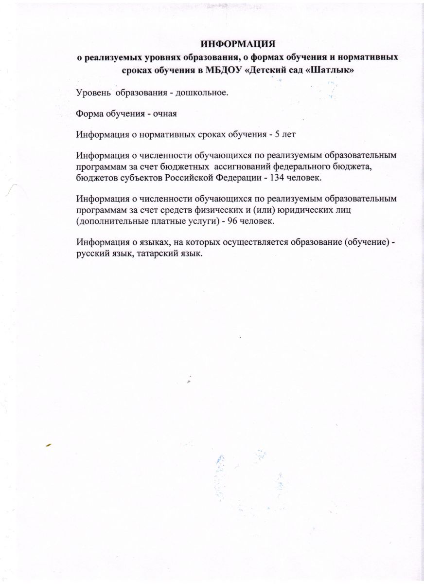 Информация о реализуемых уровнях образования, формах обучения, нормативных сроках обучения