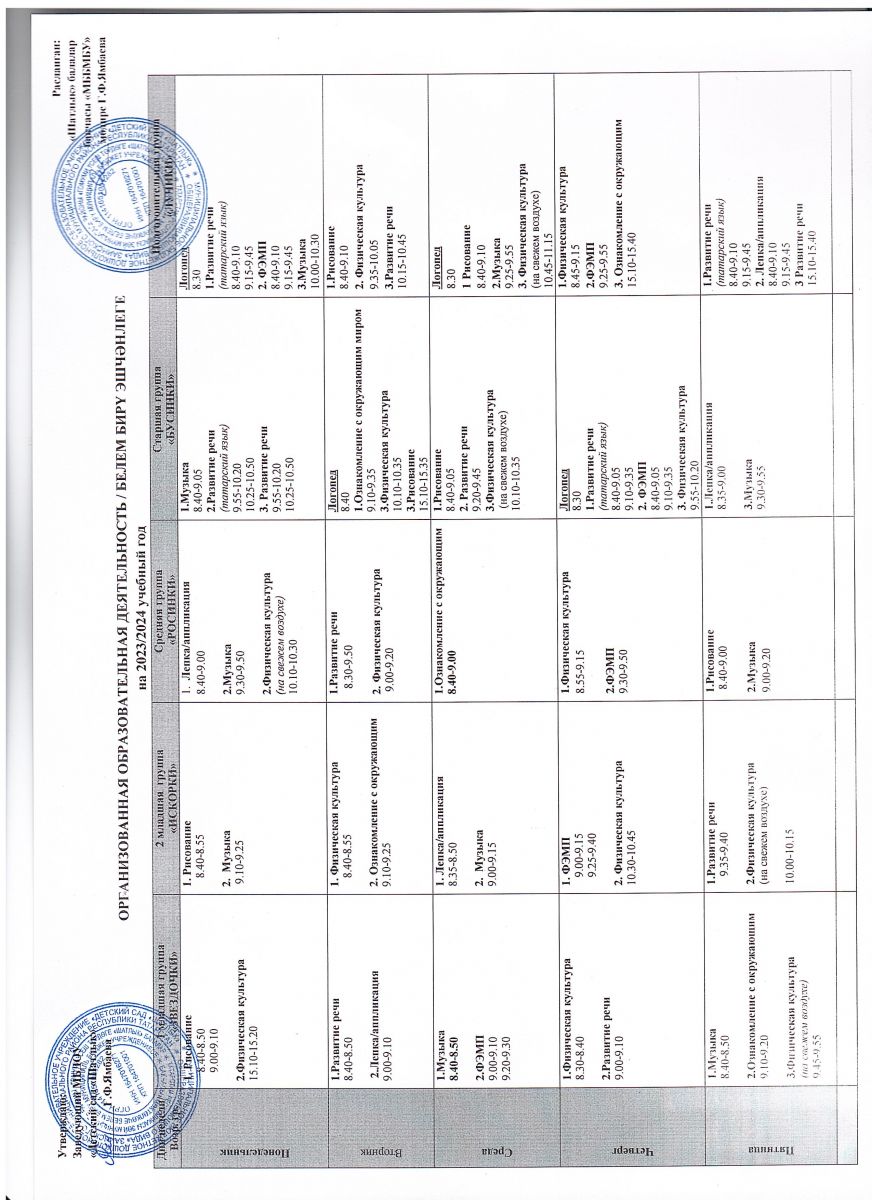 Организованная образовательная деятельность на 2023-2024 учебный год