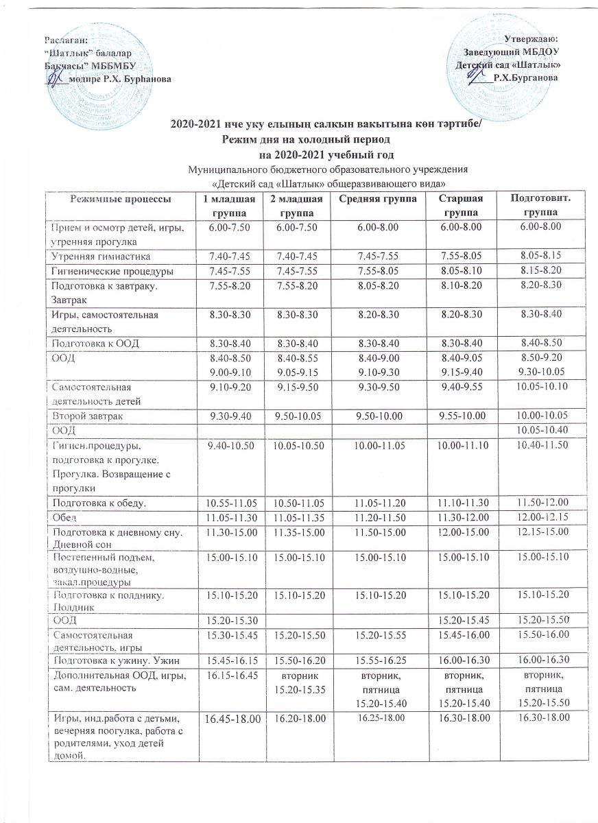 Режим дня на летний оздоровительный период на 2018-2019 уч. год