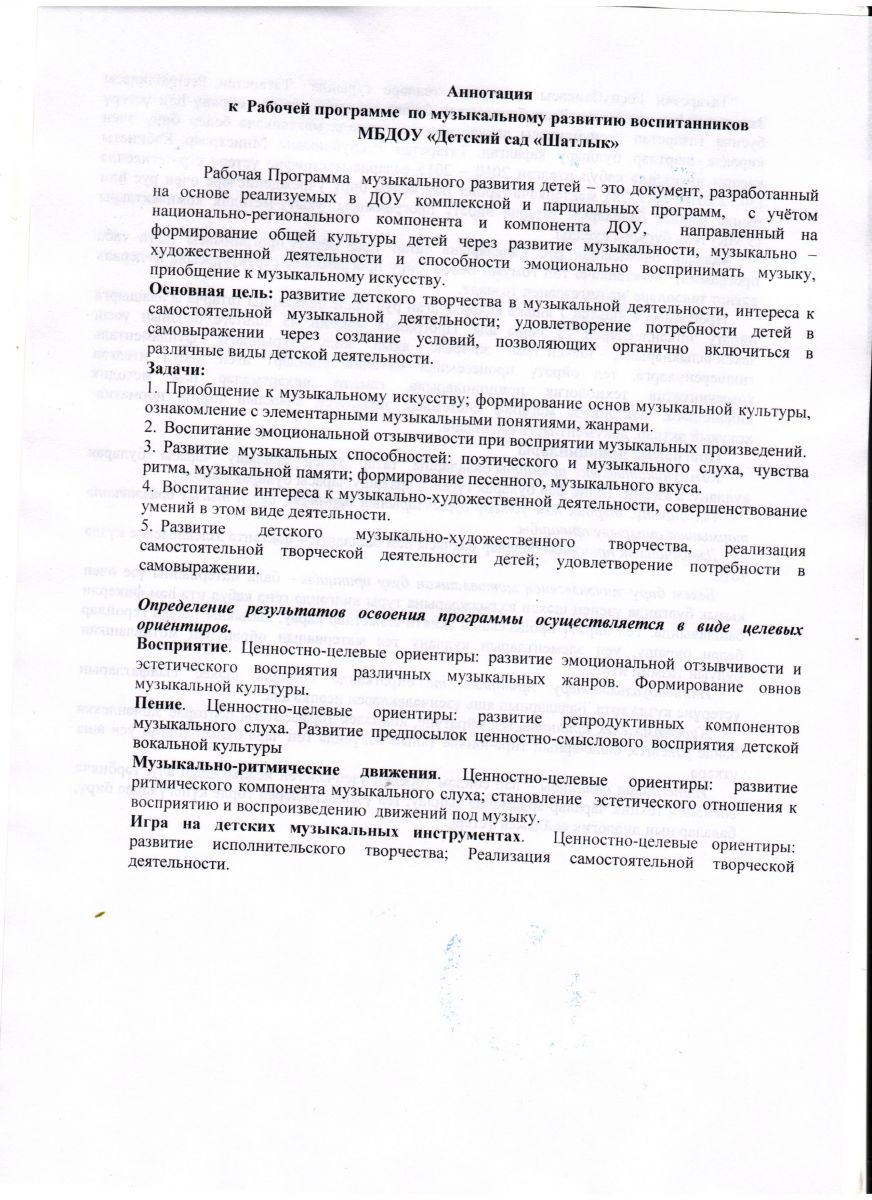 Аннотация к рабочей программе воспитателя по обучению детей татарскому языку