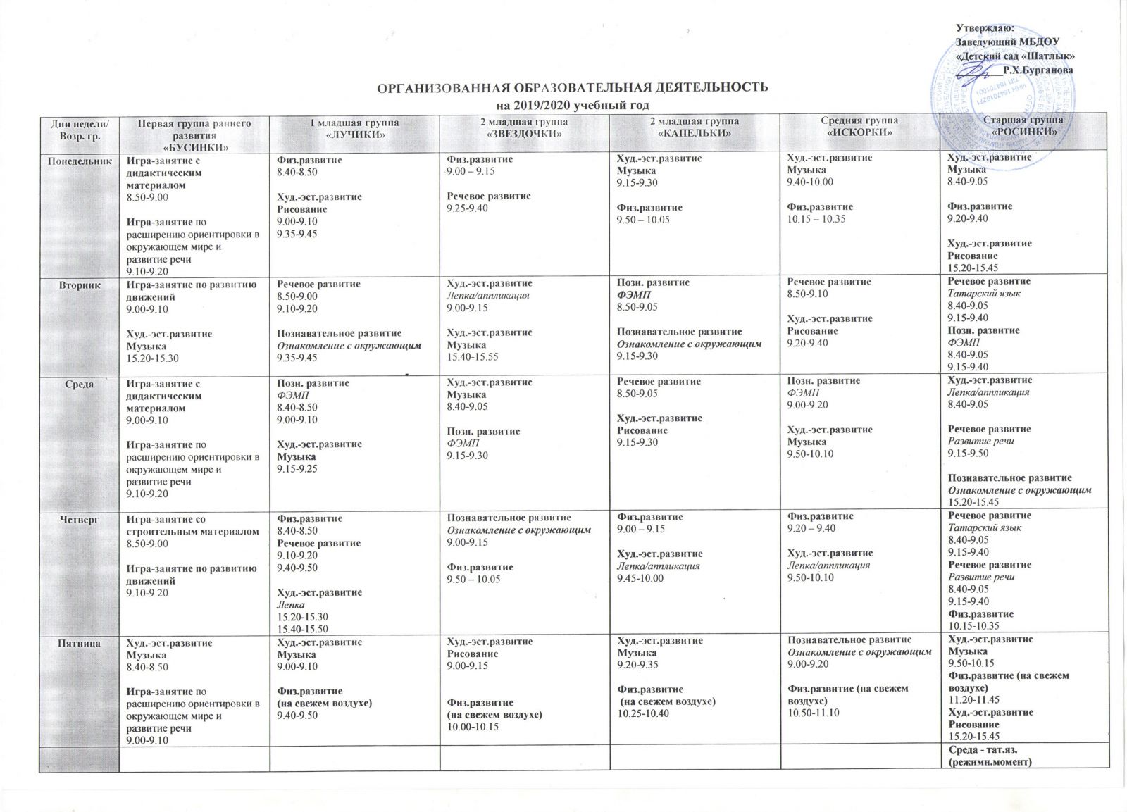 Организованная образовательная деятельность на 2019-2020 учебный год