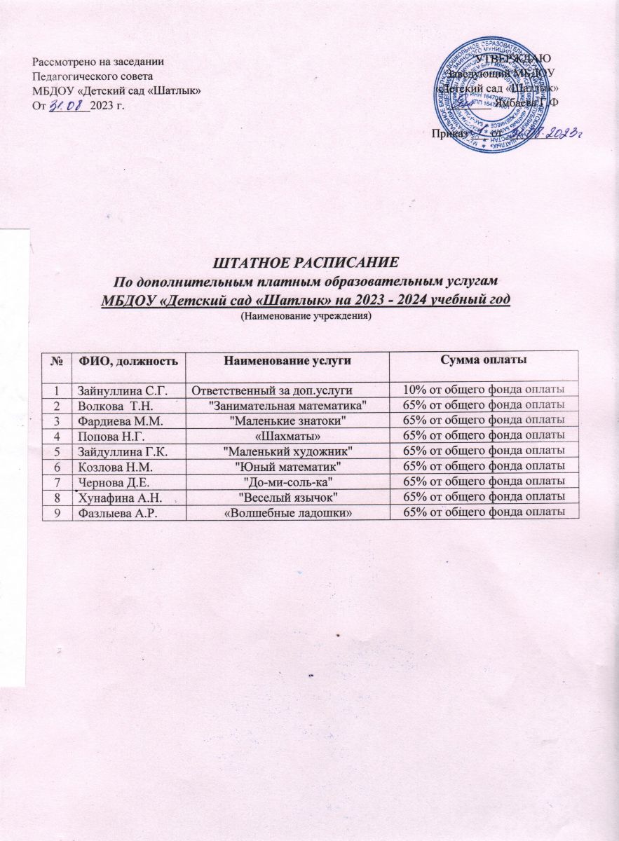 Штатное расписание по дополнительным образовательным услугам на 2023-2024